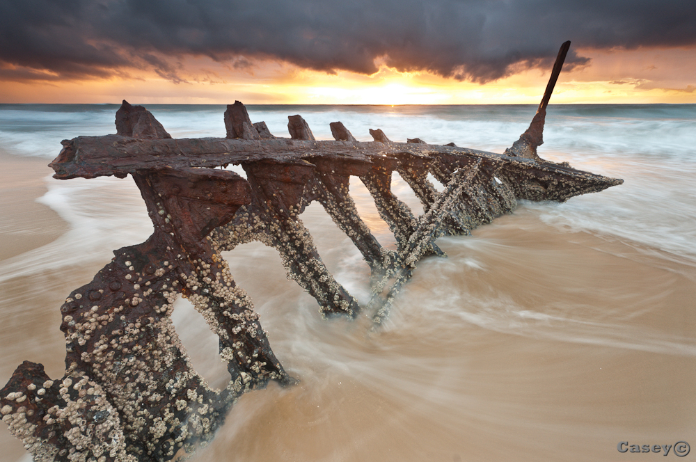 Made the early morning run out to try catch a sunrise at this fantastic shipwreck. The forecast was for clouds and possible rain, but sometimes you just have to go with it. Normally your faced with average skies, but occasionally something special happens and the lansdscape scene evolves in front of you. I thrive for those moments.
