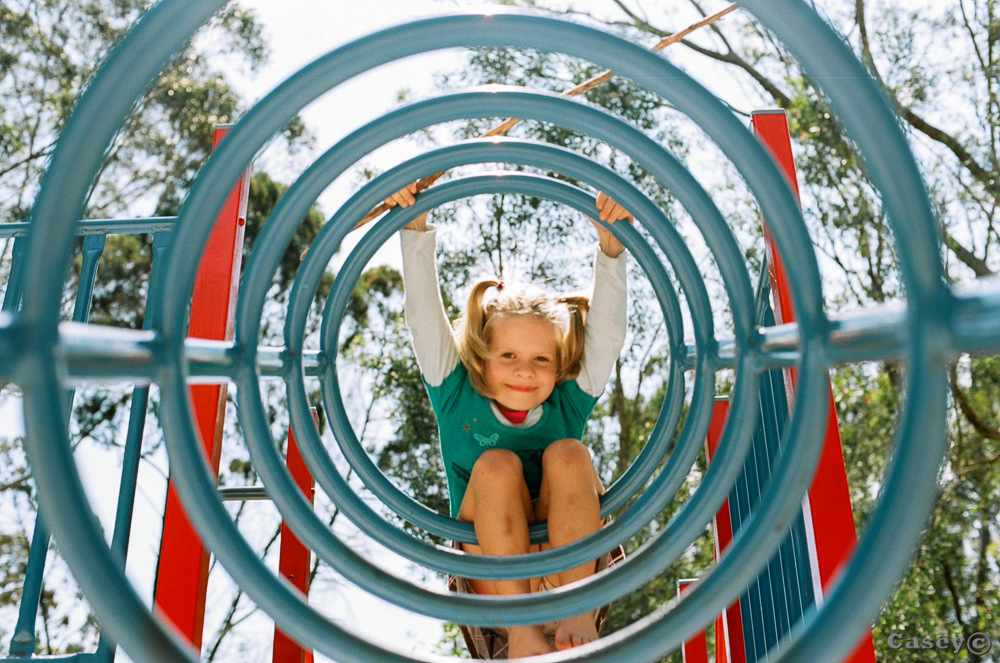 Shot of my youngest daughter Ella in the playground on Stradbroke Island. I was lying in the sand for this one and Ella thought that was pretty funny.