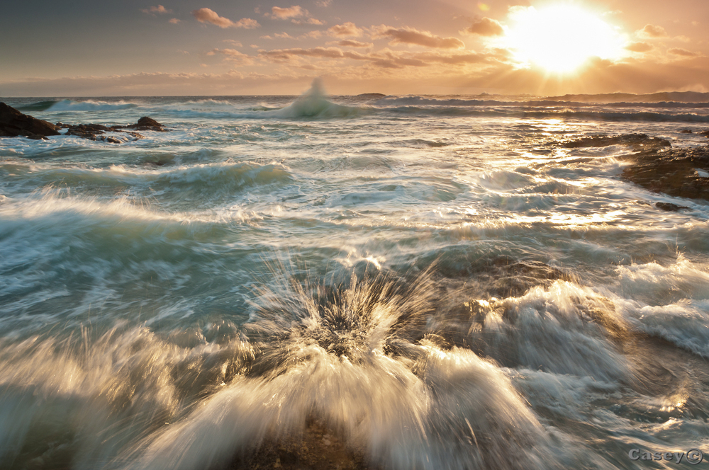 When I’m out shooting sunrise seascapes, I often find myself right in the thick of the action.  Sometimes too close..