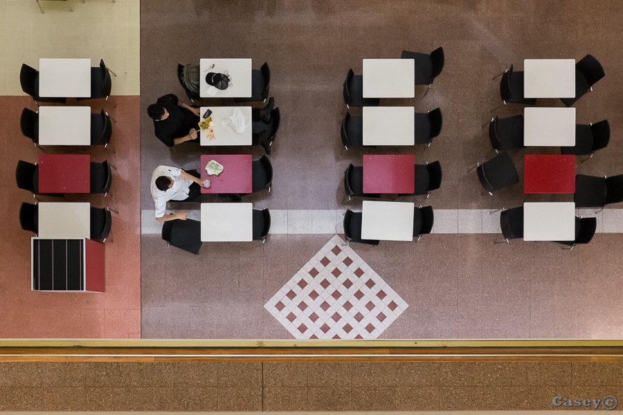 I was out shooting with my new FujiX100S, which will need to be a subject of another post, and found this shot at a shopping centre food court. The arrangement of tables and chairs in combination with the floor pattern made for an interesting abstract perspective.