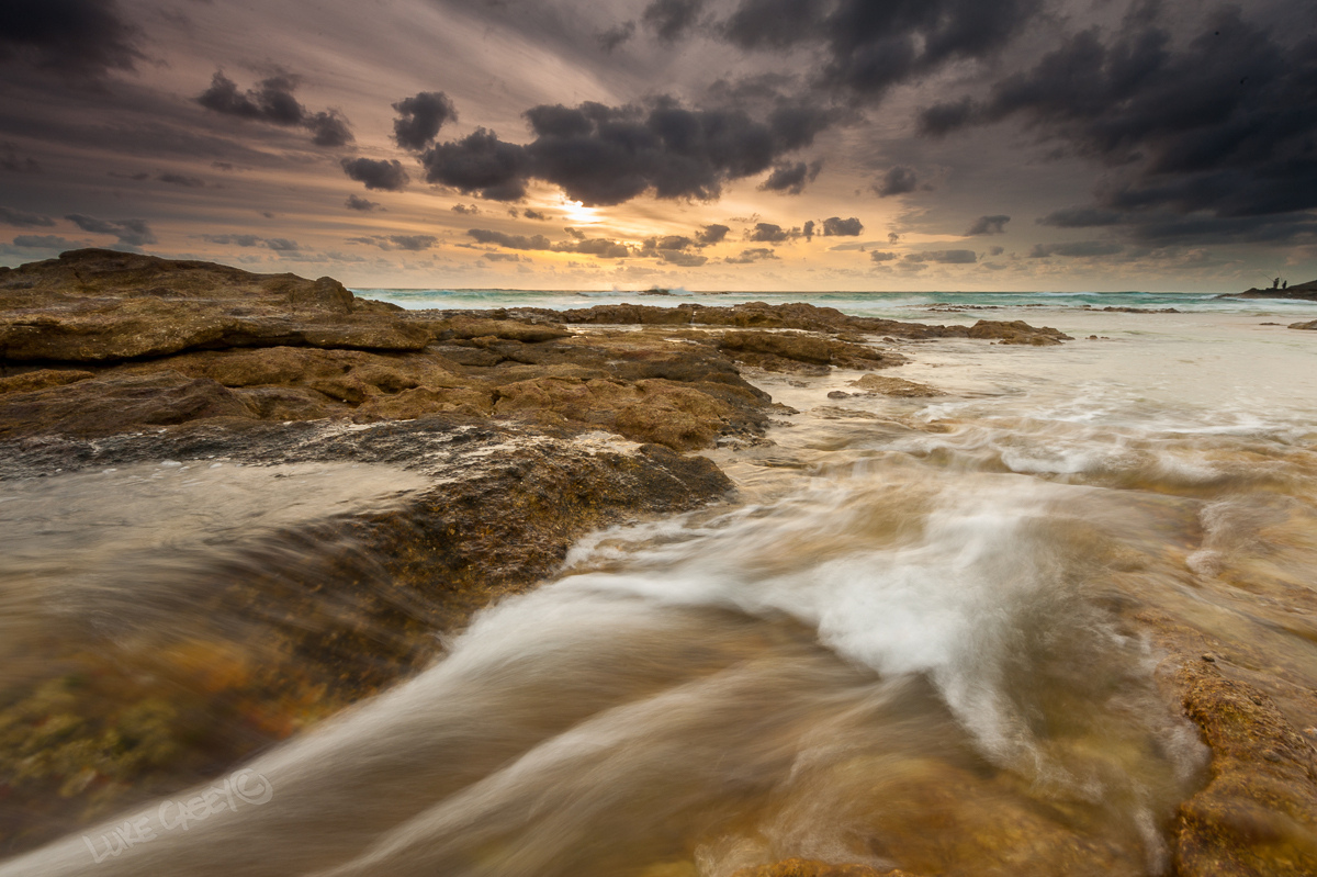 The smoothed out flowing water streaks diagonally across the image, pulling your eye within and taking it into the horizon line. While the lines in the sky pull you into a similar directing, resulting in a shot that you can’t help be drawn into. Well that is at least how I felt when I was out there squatting down into the water, looking through the viewfinder to build my scene.