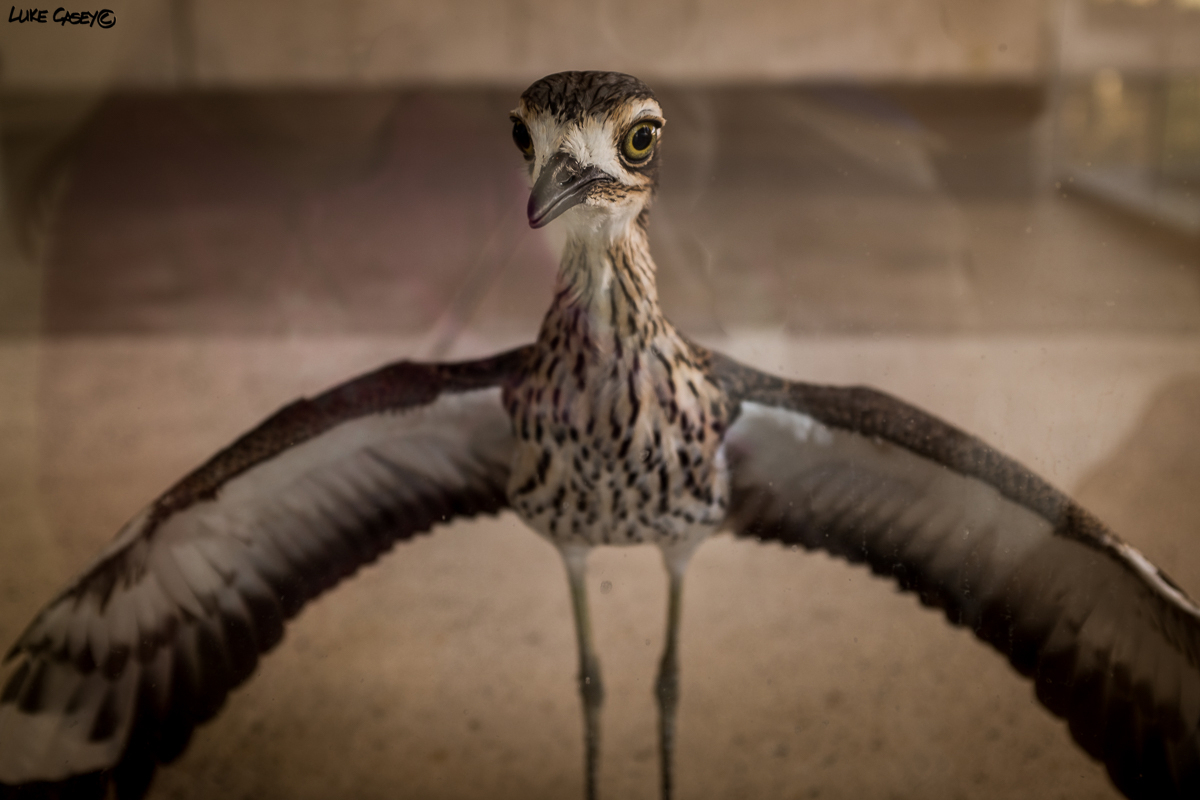 I snuck inside the building an manged to get a show looking through the glass. The Curlew then opened his wings out to impress himself, which made a great shot up close. Like open his arms for a hug.