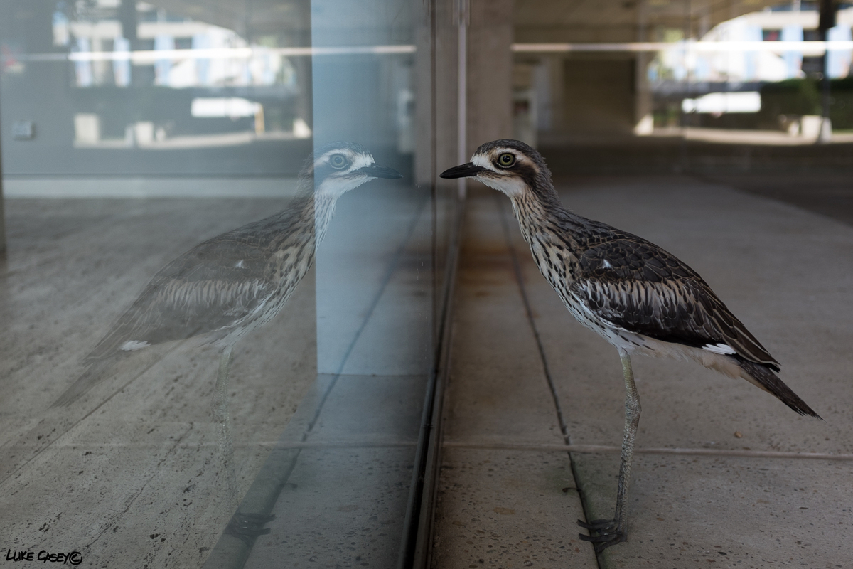When recently in Southbank area in Brisbane, I came across this Bush-stone Curlew who was staring at a glass window, deeply engaged with his own reflection. I think he found the perfect mate.. “looks just like me !” Maybe this is where humans get their infatuation with selfies.