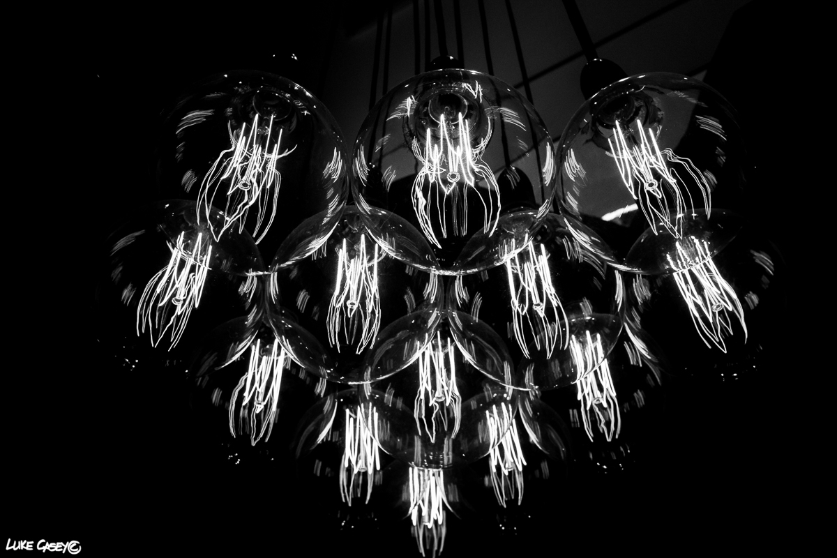While out with my kids one weekend, I came across these interesting light fixtures. The bare bulbs had large exposed elements or filaments and the lights were dimmed down very low. This allowed the details of the glowing wires to be visible and I knew I could make something of it.