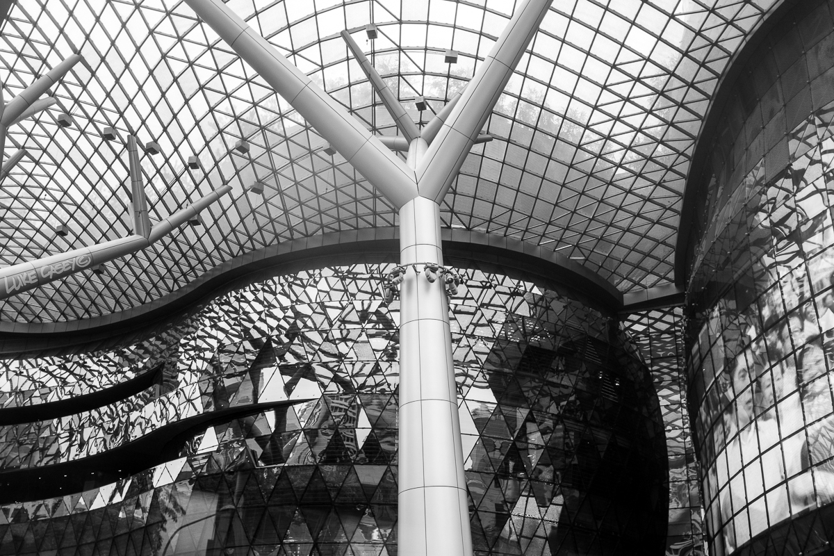 This image seemed to just work better in B&W. the endless mirrored glass faces and the web like structure combined to create an interesting abstract view of this modern steel urban jungle.