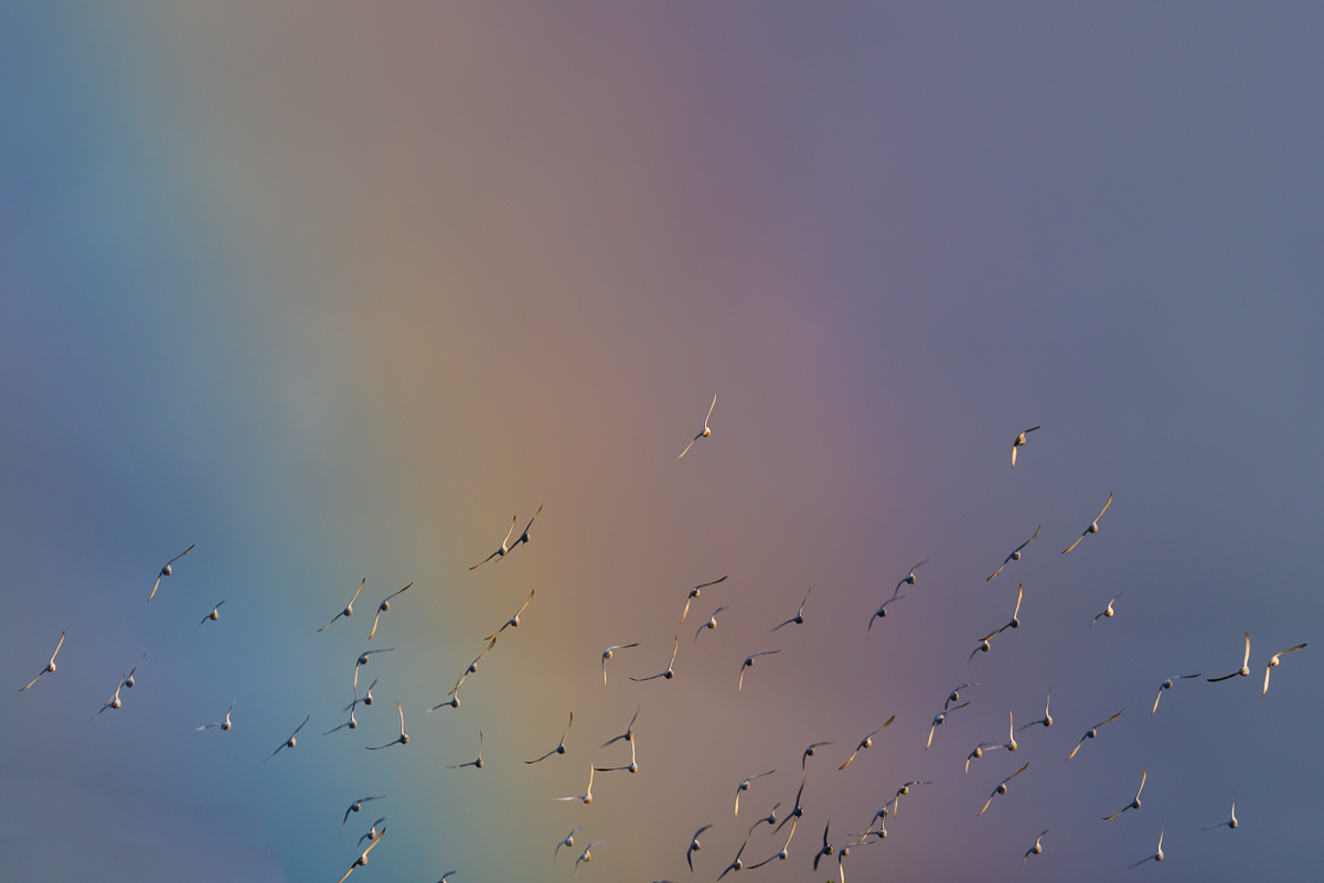 You know when you take your camera out with you on errands, just with the hope a unique opportunity arises and allow you to shoot something.. Well I had one of those glad I brought the camera” moments the other day. Some passing rain showers moved through and a break in the clouds flooded the dark rain clouds with light creating a beautiful short stumpy rainbow. I found a angle that took advantage of some resident pigeons circling the area. I grabbed my 300mm F/4 lens, added the polariser to help emphasis the colours and grabbed 3 frames of the pigeons passing through the rainbow. Moments later the sun disappeared as did the rainbow and the opportunity passed. This was one of the frames.