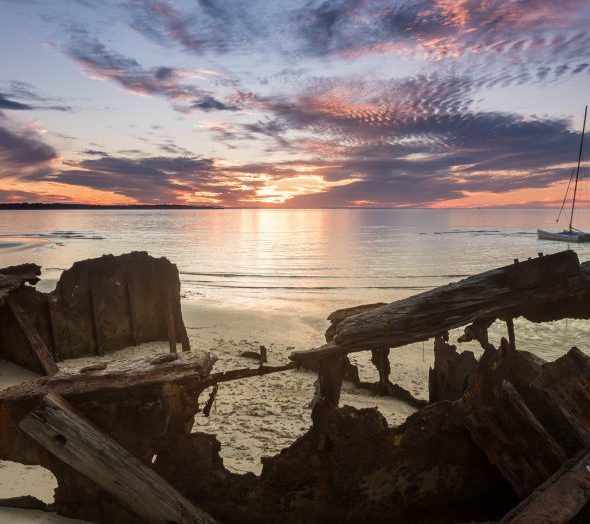Boat anchor for a Sunset landscape of Morton Bay – Stradbroke Island